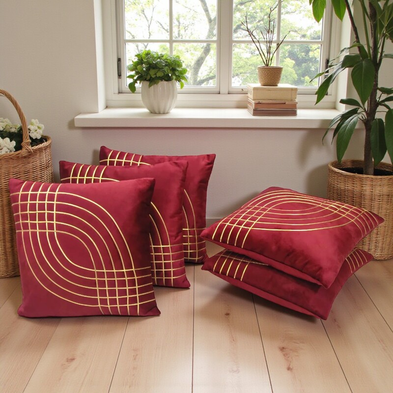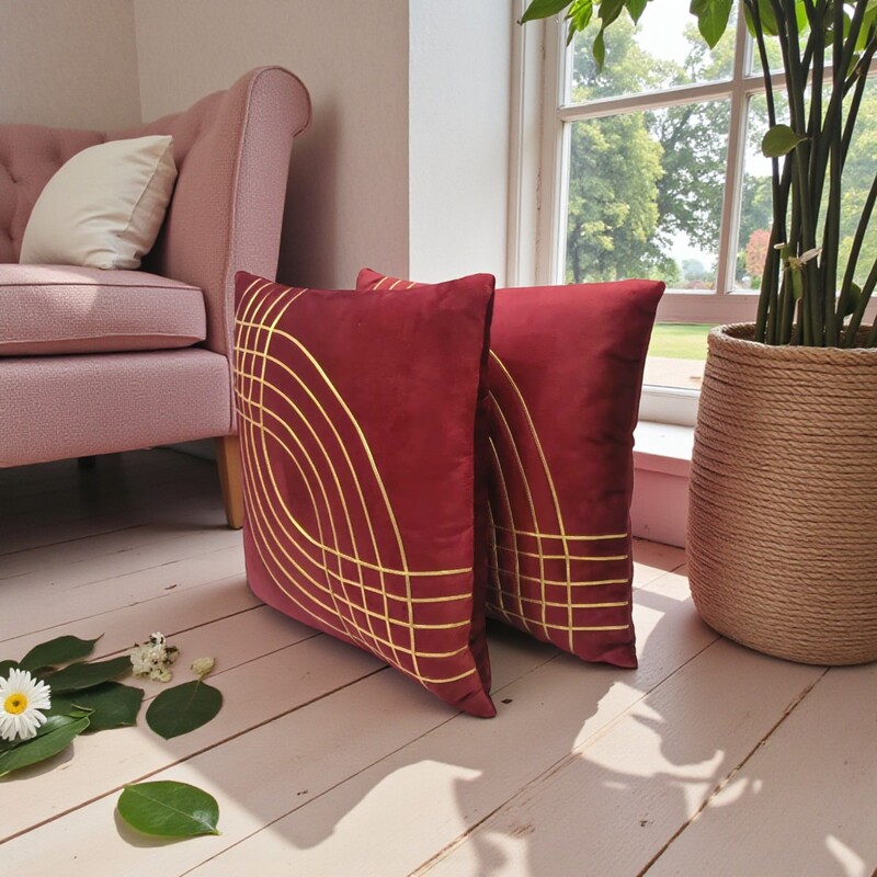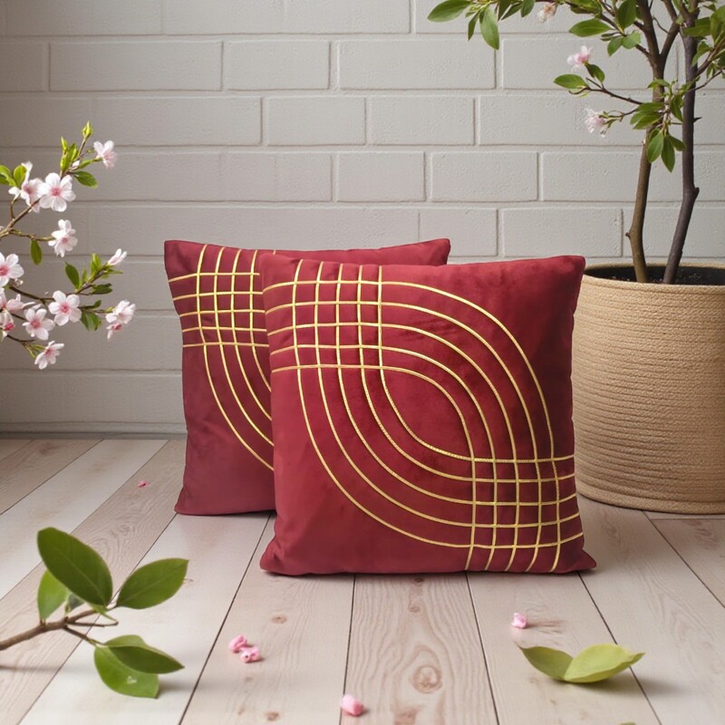 Golden Design Velvet Cushion Cover for Sofa | Designer Home Decor (Maroon)