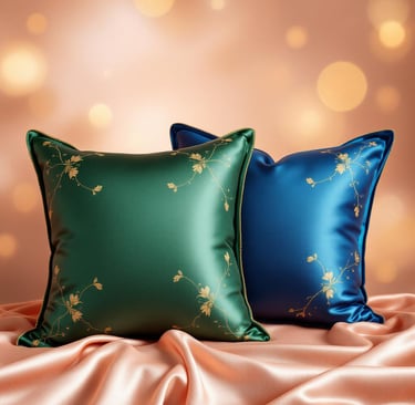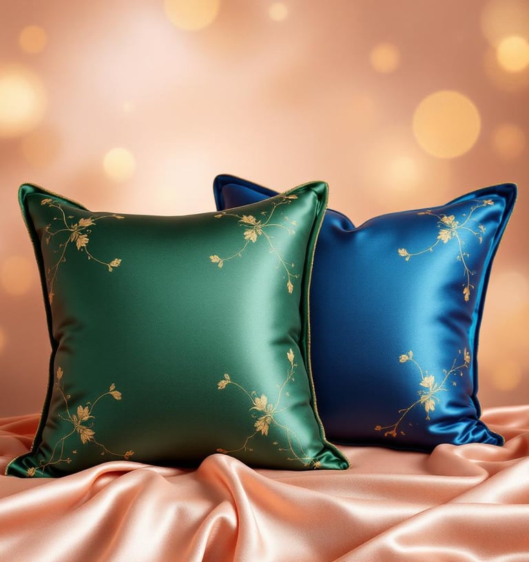 Satin cushion covers in sizes from 16x16 to 28x28 inches.